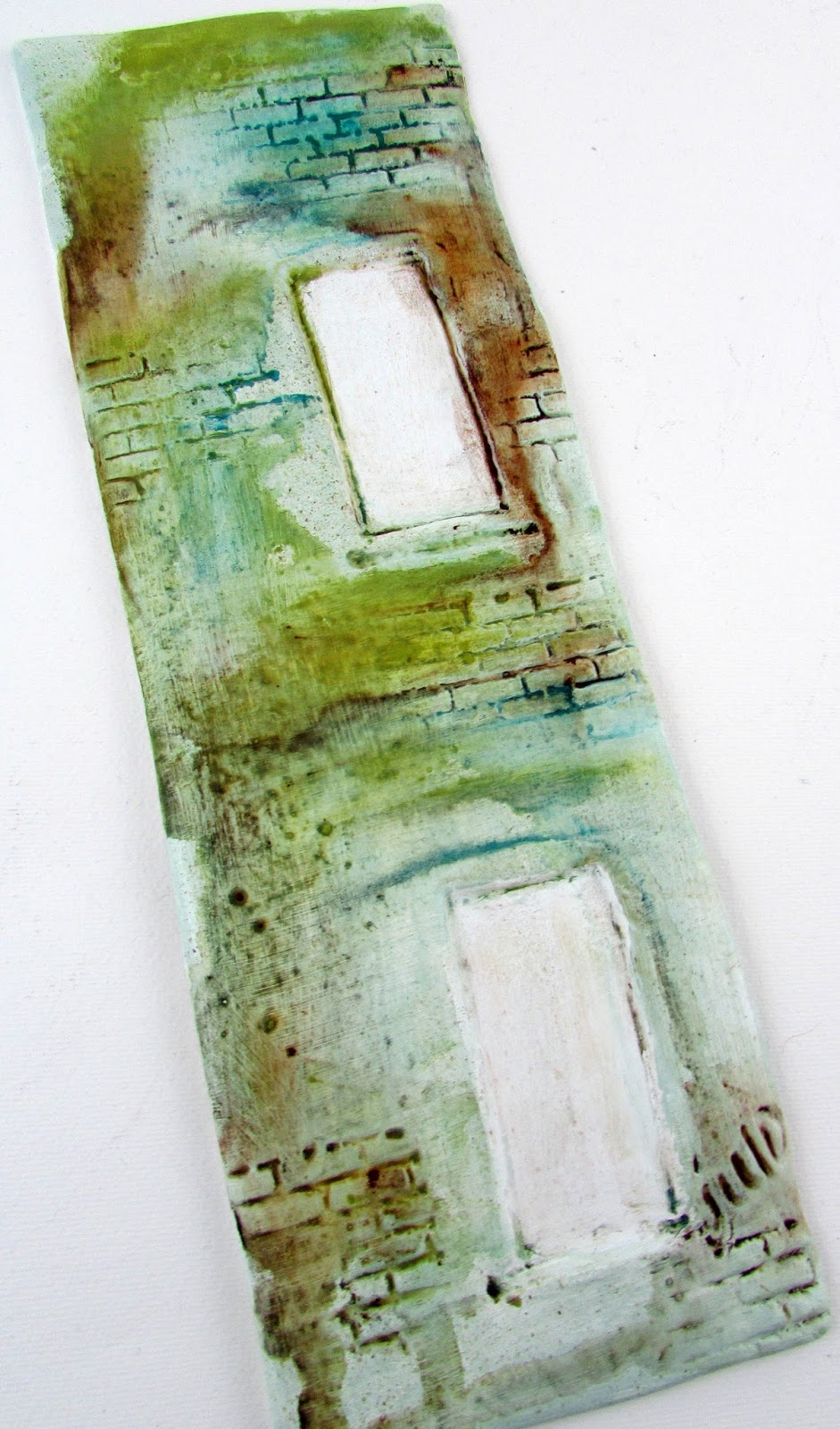 Πρόσθεσα καφέ και λαχανί χρώματα Artex και έβαψα με ακρυλικά χρώματα τα τουβλάκια.